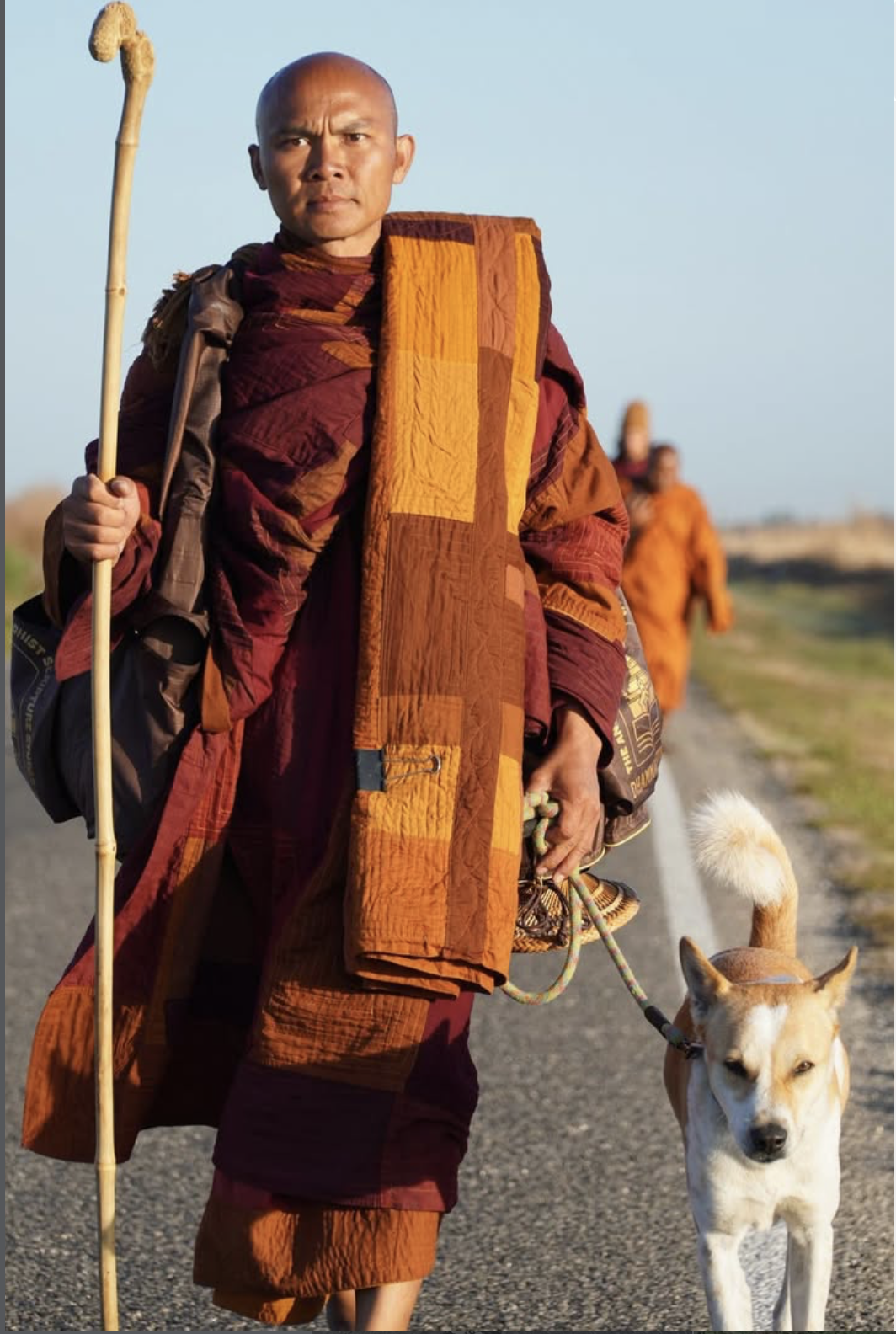 This photo is taken from the IG account. This amazing dog with a heart right on his face has walked with the Buddhist Monks hundreds of miles. Check out where they are with the above link and watch their powerful peaceful protest. They are going all the way to Washington DC.